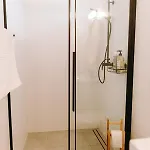 The property faces the garden and includes a seating area appointed with a writing table. A bathroom is fitted with a separate toilet and a shower, along with dryers and towels, which are also provided.
